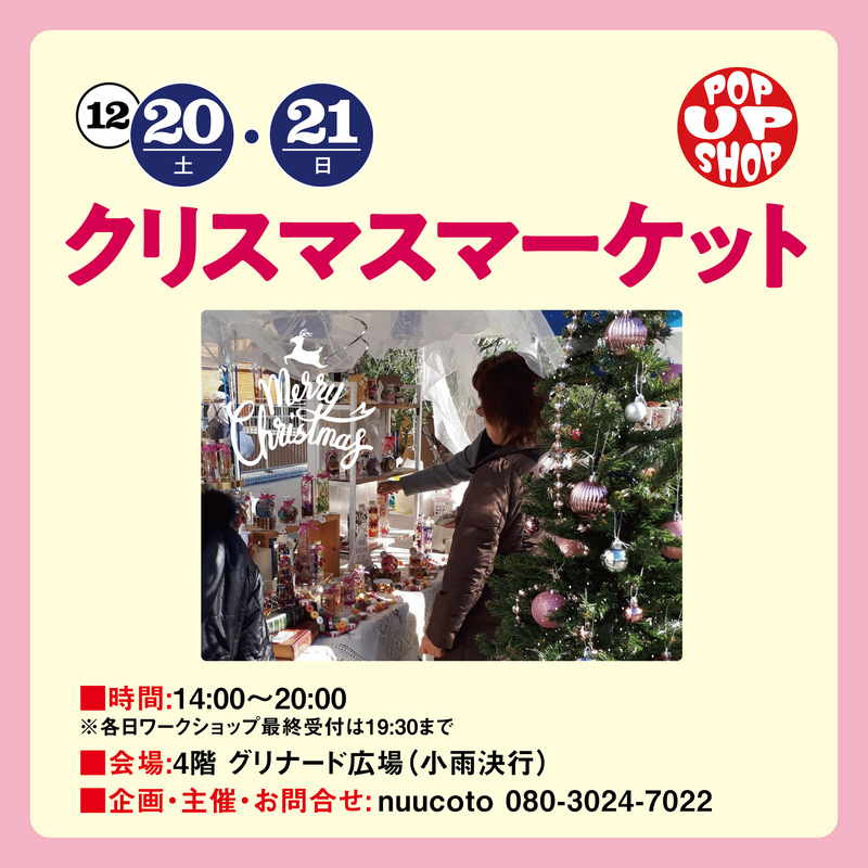 クリスマスアイテムの販売やクリスマスワークショップを開催します。