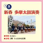 イベント 新春 多摩太鼓演奏 グリナードの初売りは今年も勇壮な和太鼓の響きでお出迎え!令和八年もよろしくお願い申し上げます。 開催日時 1月3日(土)9:50~ 雨天中止 場所 2階 うぇるかむ広場 tweetする Facebookでシェアする LINEで送る