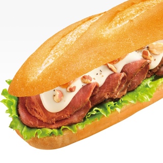 肉本来の旨味を引き出し、しっとりやわらかく繊細な味わいの炭火焼きローストビーフです。 また繊細さだけでなく、折り重ねることでしっかりとした肉感も感じることができます。 ソースには玉ねぎがベースとなるシャリアピンソースを使用。玉ねぎの甘さやコクがローストビーフと相性良く、トリュフの香りによる贅沢感もプラスしました。 この冬限定の特別感のあるミラノサンドです。