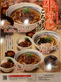 旨みぎっしり、プリっと弾力食感の牛すじコンうどん定食をご賞味ください。 旨みがつまった、甘辛な牛すじコン丼定食もご飯がすすみます。