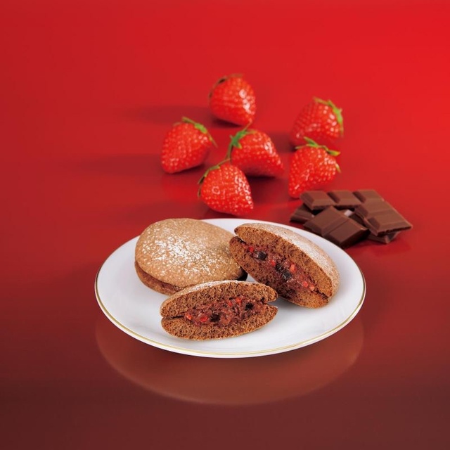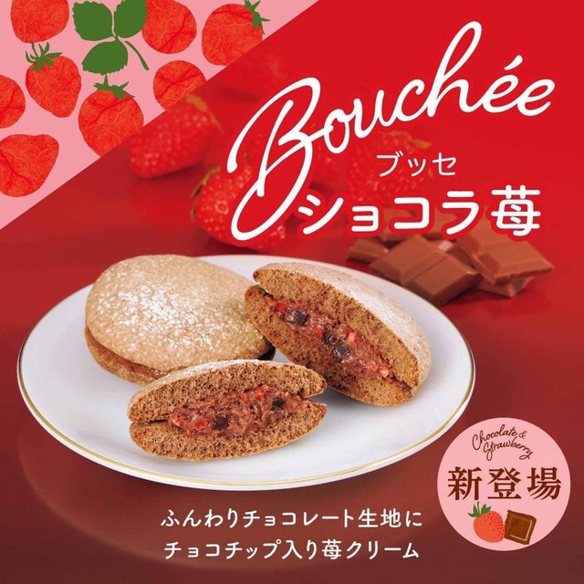チョコチップと苺のフリーズドライを混ぜ込んだなめらかな苺クリームを、ショコラ風味のふんわりブッセ生地でやさしくサンドしました。ひとくちごとに苺の酸味と濃厚なチョコの味わい、ブッセ生地のほのかな甘みがふわっと広がります。 御詰め合わせのご用意もございます。